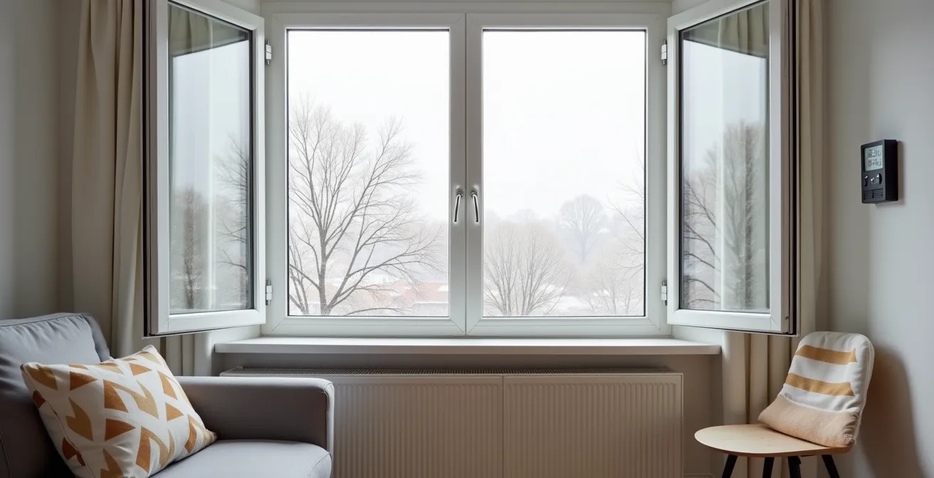Die korrekte Strategie für Altbau-Fenster ist daher ein Kompromiss: die Reduzierung von starker Zugluft bei gleichzeitiger Erhaltung einer minimalen Luftdurchlässigkeit. Statt Silikon eignen sich hierfür selbstklebende Kompressionsdichtbänder aus Schaumstoff oder Gummi. Diese sind in verschiedenen Profilen und Stärken erhältlich und können passgenau in den Fensterfalz eingeklebt werden. Sie reduzieren den Luftstrom erheblich, ohne die Fuge komplett zu versiegeln. Eine weitere, professionellere Methode ist das Einfräsen einer Nut für eine dauerhaft elastische Lippendichtung. Ziel ist es, die Kontrolle über den Luftaustausch zurückzugewinnen: weg von zugiger Infiltration, hin zu bewusstem, stoßweisem Lüften, ergänzt durch eine definierte Grundlüftung.