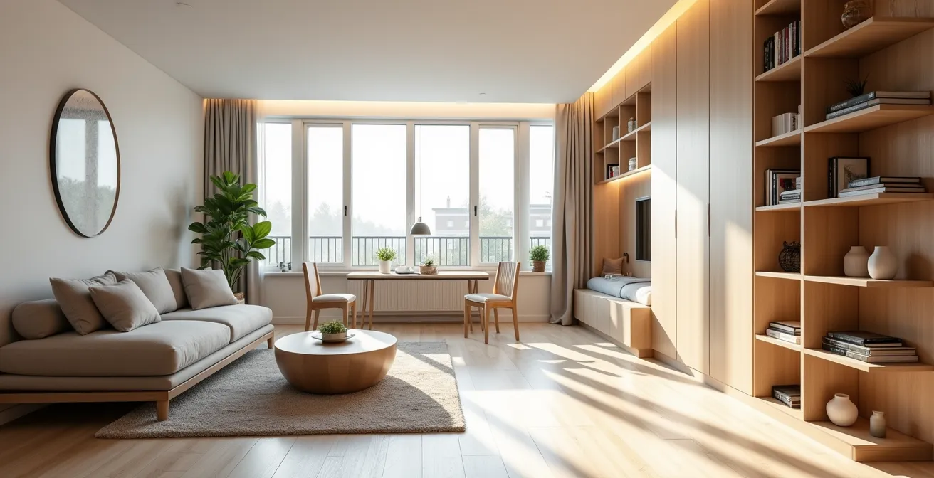 - Investieren Sie in langlebige, ergonomische Kernmöbel (z.B. Schrankbett) und nutzen Sie die volle Raumhöhe durch eine zweite Ebene, um klare Funktionsbereiche zu schaffen.